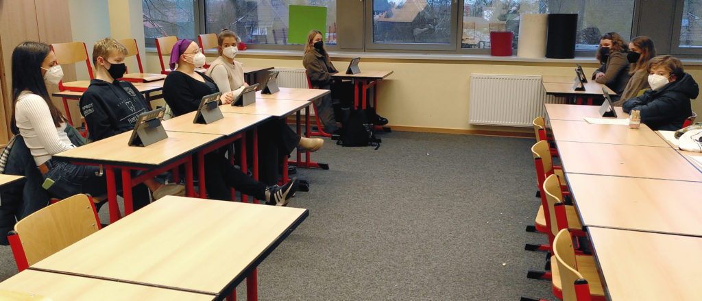 Im Vergleich zum letzten Schuljahr hat sich für uns aber auch vieles verbessert: Wir können uns wieder regelmäßig zu Redaktionskonferenzen treffen und wir können „echte“ Interviews mit den Leuten führen, anstatt sie nur per E-Mail zu befragen. Auch mit Maske und Abstand ist es doch viel besser, in der Schule gemeinsam Beiträge zu erstellen und sich direkt mit anderen auszutauschen, als alleine zu Hause zu sitzen. Bei unseren Interviews müssen wir uns natürlich an die Corona-Regeln halten und das ist gar nicht immer so einfach. Wenn man mit mehreren Leuten ein Interview machen will, muss nämlich jede*r in ein eigenes Aufnahmegerät sprechen. Daher mussten wir ein bisschen experimentieren, aber mit iPads klappt das super und die Aufnahmen klingen auch mit Maske richtig gut. Allerdings muss man die vielen einzelnen Aufnahmen dann erst noch zu einem Interview zusammenbasteln. Das ist ein bisschen nervig, aber es ist auch sehr interessant, die digitalen Möglichkeiten zu entdecken.