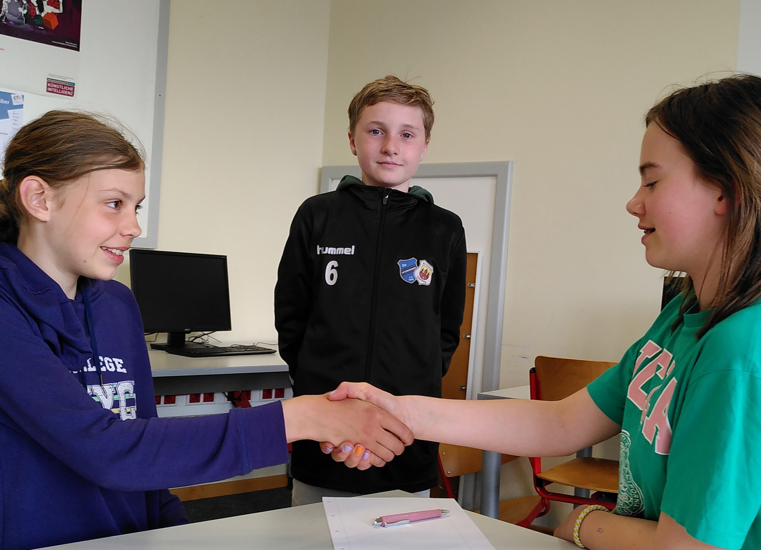 „Es ist super, dass es bei uns an der Schule Streitschlichter*innen gibt. Denn oft kann man die Probleme nicht allein lösen. Dann ist es gut, wenn man sich an Schüler*innen wenden kann, die extra dafür ausgebildet wurden. Man will ja auch nicht immer gleich zu den Lehrer*innen oder den Sozialpädagog*innen gehen.“