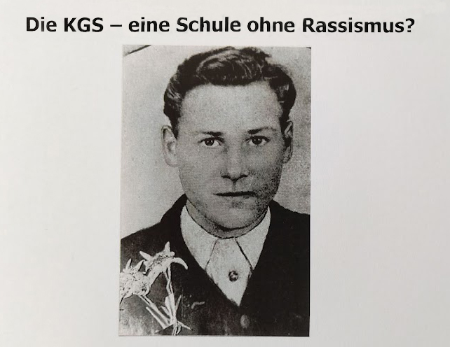 Zur Eröffnung sang unser Schulchor das Lied „Blowing in the Wind“ von Bob Dylan. Danach begrüßte Herr Lemke, der die Veranstaltung organisiert hatte, die Anwesenden und sprach über Bartholomäus Schink. Er lebte in der Zeit des Nationalsozialismus. Er kämpfte gegen die Nazis und hat dabei auch selbst Gewalt angewendet. Er raubte, randalierte und hat auch mehrere Nazis umgebracht. Das tat er, um andere zu beschützen und um ihnen zur Flucht zu verhelfen. Deshalb wurde er mit 16 Jahren hingerichtet. Herr Lemke stellte die Frage: War Bartholomäus Schink nun ein Held, weil er im Widerstand gegen die Nazis kämpfte, oder war er ein Krimineller, weil er geraubt und gemordet hat? Mit dieser Frage wollte er uns zum Nachdenken anregen. Er selbst antwortete: “Bartholomäus Schink ist ein perfektes Beispiel, um die Schwarz-Weiß-Brille abzunehmen.“ Dieses Beispiel hat uns gezeigt, dass Menschen nicht entweder komplett gut oder komplett böse sind. In der Zeit des Nationalsozialismus hat sich Bartholomäus Schink entschieden gegen Unterdrückung und Rassismus zu kämpfen und Kämpfen geht nicht, ohne selbst Gewalt anzuwenden.