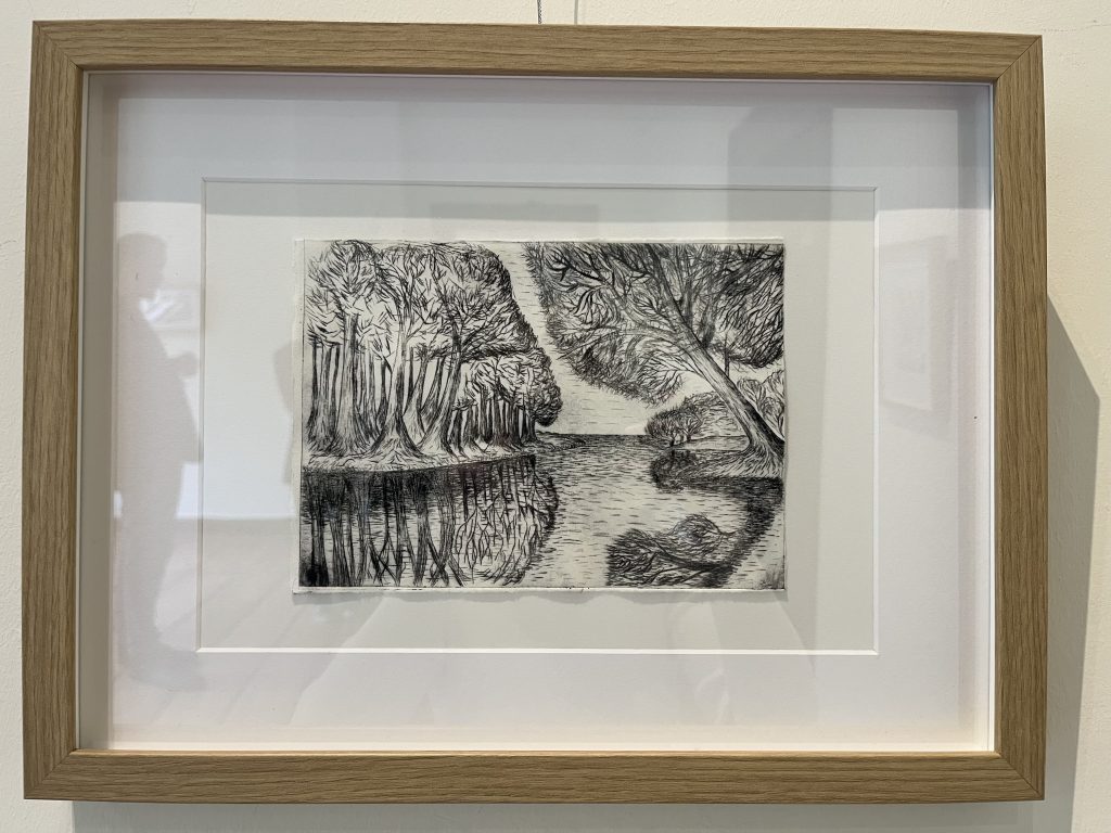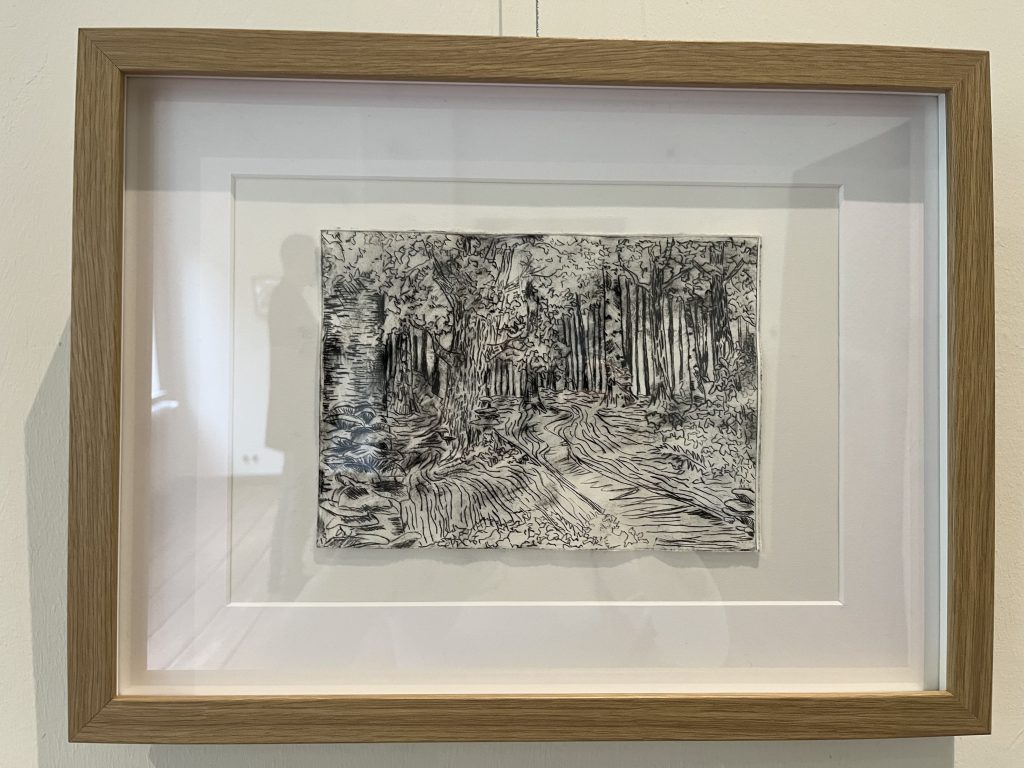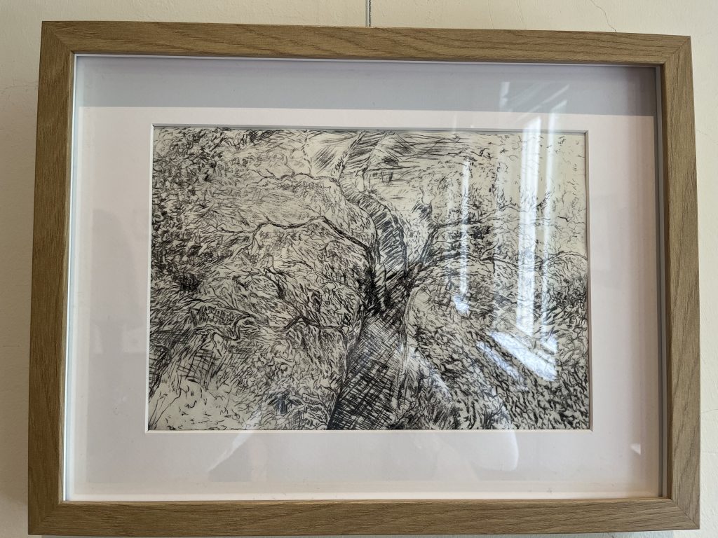 Unsere Radierungen sind übrigens nicht einfach im Unterricht entstanden, sondern zusätzlich in vielen freien Stunden, in denen wir uns intensiv mit Techniken, Motiven und dem Thema „Landschaft“ auseinandergesetzt haben. Das Ergebnis kann sich sehen lassen – und ist nun für alle sichtbar.