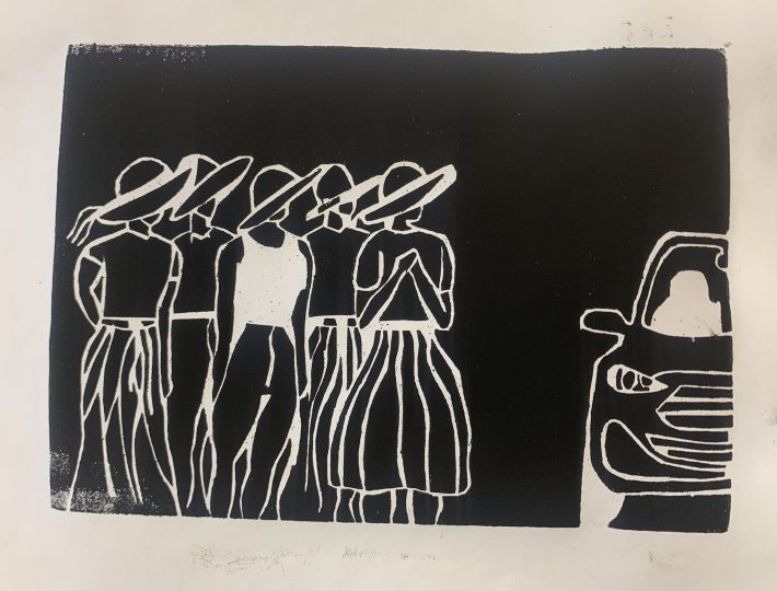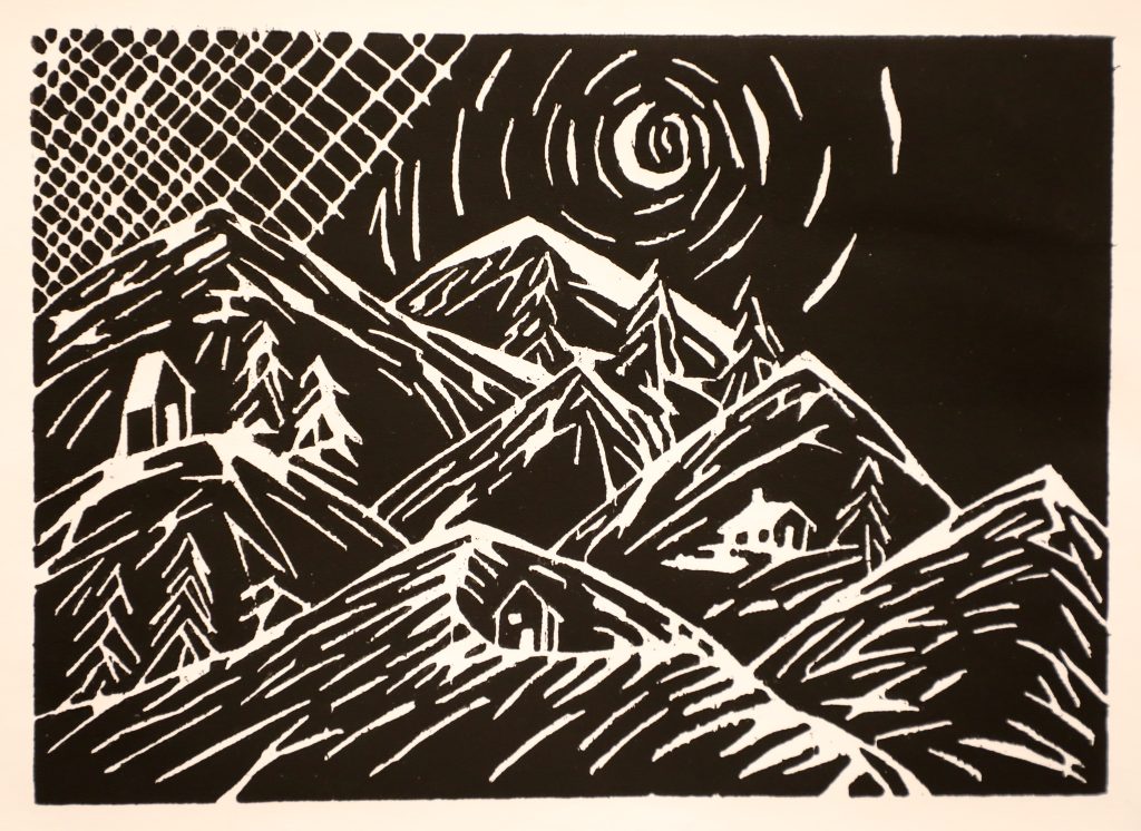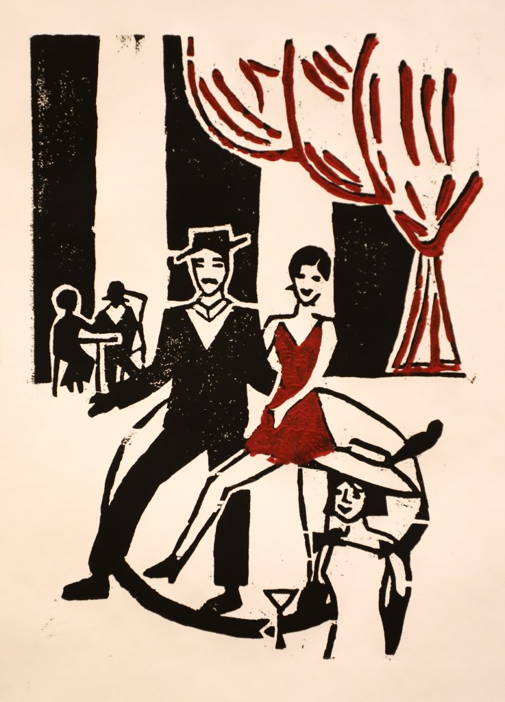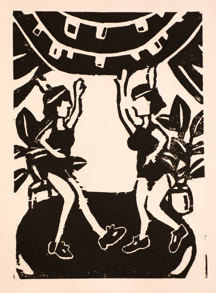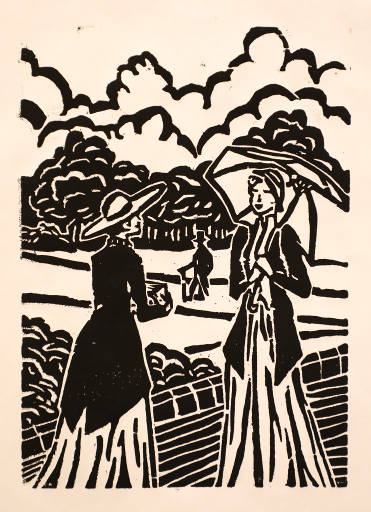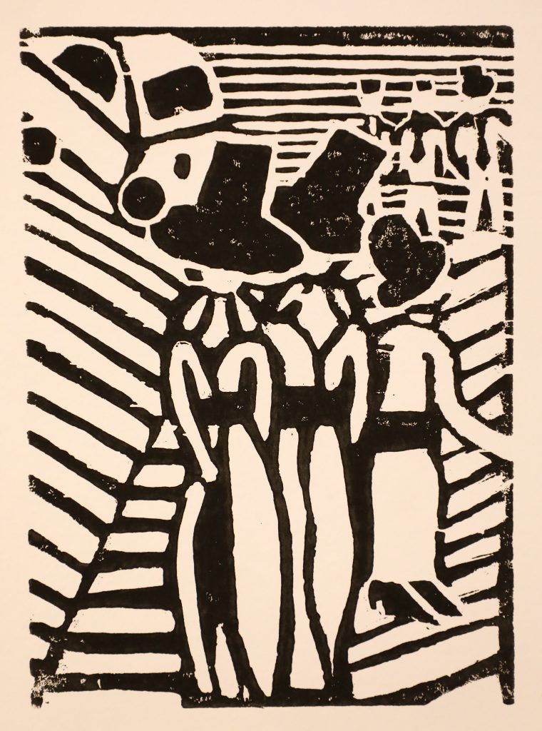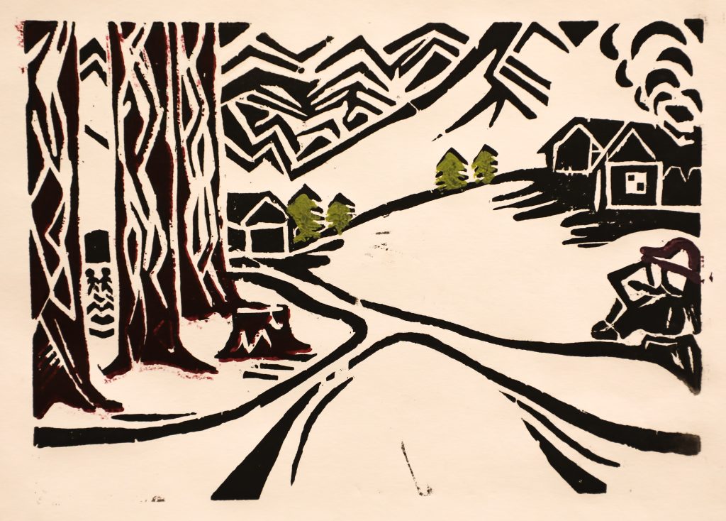 Die Schülerinnen des Leistungskurses von Frau Monchablon haben anhand von archivierten, katalogisierten schriftlichen Bildbeschreibungen Kirchners ‚Bilder‘ und Motive individuell interpretiert (Holzschnitt) und damit einen Querschnitt durch Kirchners Werk erstellt.